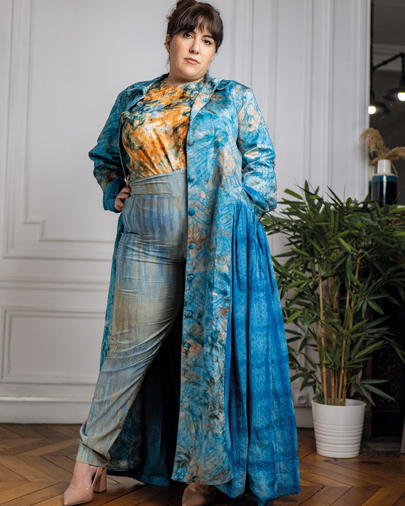 Le mannequin qui porte cette pièce fait une taille 36 et 1 mètre 70 cm. Pieds nus, la combinaison frôle le sol.